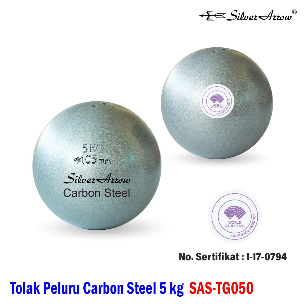 Spesifikasi Tolak Peluru Carbon Steel 5kg SAS-TG050 merek Silver Arrow sebagai berikut :